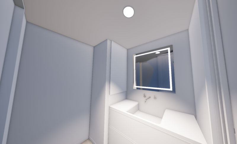 - 洗面台デザイン、ワイド1200、照明付き鏡、収納つき