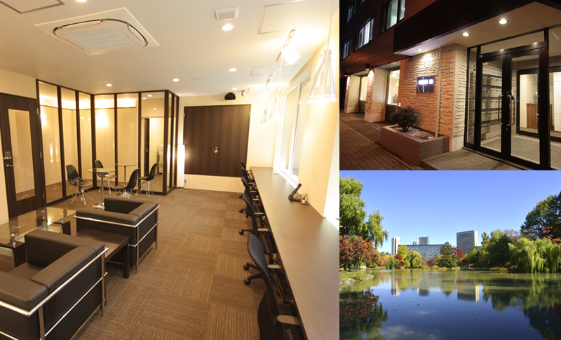 専用オフィスとビジネスラウンジ両方を利用できる札幌初のハイブリッド型オフィスです。